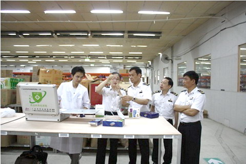 6月18日,肇庆市食品药品监督管理局负责同志亲自带队,组成3个检查组,对辖区内保健食品批发企业全面开展现场检查,重点检查保健食品的购进渠道,产品的包装标识,对声称有减肥、辅助降血糖、缓解体力疲劳、辅助降血压等类别的保健食品进行产品抽样,并利用食品药品快筛快检技术进行鉴别。此次批发企业专项检查将持续到7月底,对全市保健食品批发企业实行100%覆盖检查,此后还将继续开展保健食品零售企业的覆盖检查。