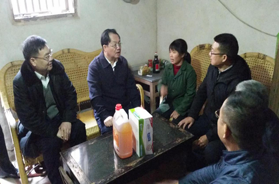 骆文智一行深入农家与贫困户座谈,深入调研精准扶贫工作,为贫困户送上粮油等慰问物资和慰问金。