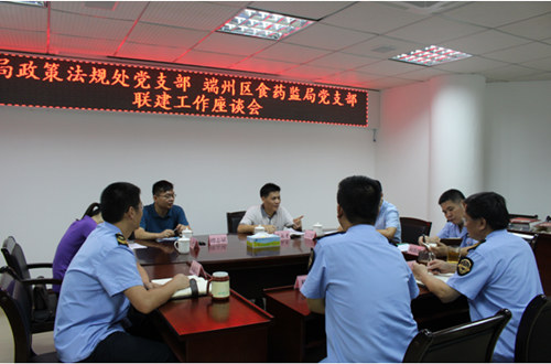 根据省食品药品监督管理局机关党委开展联建基层、提升监管效能活动的工作部署,省局政策法规处与联建对象肇庆市端州区食品药品监督管理局党支部进行了沟通和联系,并了解掌握了联建单位的工作需求。在此基础上,省局政策法规处党支部一行于2015年7月28日在端州区局召开联建工作座谈会,签署联建工作备忘录,正式开展省局政策法规处党支部联建服务工作。