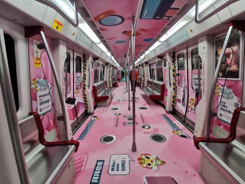 三号车厢的主题内容是化妆品,车厢内包选用了女性偏爱的粉色作为主色调,以吸引更多的女性乘客对该节车厢特别关注。车厢呈现的展品包括“探寻芬芳之旅”“魅力口红”“美容镜”“防晒化妆品”“拜拜痘痘”等,这些常在化妆品专柜和时尚杂志看到的内容,其实背后都蕴藏着丰富的科学知识。该节车厢的车顶是琳琅满目的化妆品卡通图案,让女性乘客对美丽心驰神往,引导她们带着关于美丽妆颜的问题走进科学中心的科普馆,进一步了解皮肤的科学、化妆的正确使用等更多关于化妆品背后的故事。