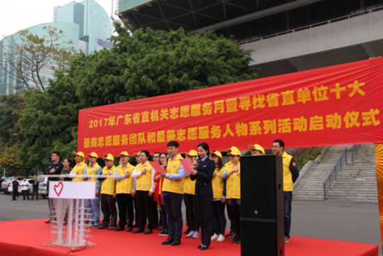 为宣传志愿服务先进典型,用身边榜样引领志愿文化,2017年3月5日上午,省直机关工委、省文明办、省红十字会在广州天河体育中心西南广场举行省直机关志愿服务月活动暨寻找省直单位十大最美志愿团队和最美志愿服务人物活动启动仪式。省局团委组织青年志愿者积极参加现场志愿服务活动。