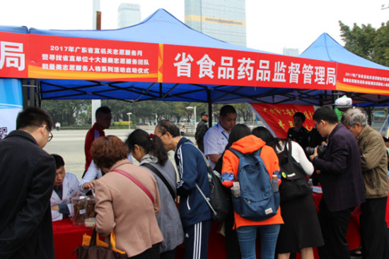 活动向2016年省直单位“十大最美志愿者”和“十大最美志愿者提名奖”获得者颁发证书和奖杯,省直各单位志愿服务岗代表上台宣读了志愿服务承诺。活动中,省局团委在活动摊位设置了食品药品科普宣传资料派发、中药材快速鉴别演示、酒类鉴别演示、医疗器械演示、咨询及公众体验服务环节,结合“冬虫夏草”、“鹿茸片”、“洋酒”、“体温计”、“血压仪”等实物样品,向市民群众传授真伪鉴别的技巧及要点、医疗器械的正确使用方式,增强了公众科学饮食、安全合理用药意识及如何正确使用医疗器械仪器等专业知识。活动共派发200多份资料,接受群众咨询300多人次。