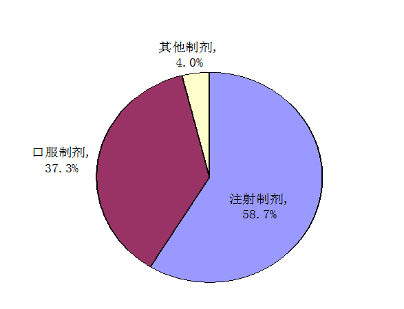 按药品剂型统计,2013年药品不良反应/事件报告涉及的药品剂型分布中,注射剂占58.7%、口服制剂占37.3%、其他制剂占4.0%。注射剂的比例再次出现上升,与2012年相比升高了2个百分点,口服制剂比例降低0.8个百分点。