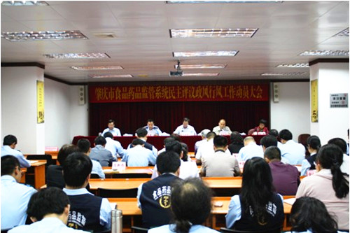 根据省、市关于开展民主评议政风行风工作要求,肇庆市食品药品监管系统被列入重点评议对象,民主评议工作分为动员部署、自查自纠、整改落实、集中评议考核、总结通报阶段五个阶段。在评议工作中,各单位“一把手”对评议工作负总责,民主评议工作的各项任务及相应责任落实到具体部门、岗位和人员,并考核到人。将评议工作与食品药品监管工作、与群众路线教育实践工作有机结合,加大对损害群众利益的食品药品违法行为的查处力度,着力解决人民群众关心的热点、难点问题,推动食品药品监督管理工作持续稳定发展。(肇庆市局行评办、省局食品生产安监处供稿/图)