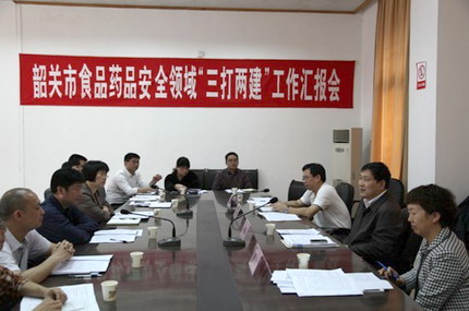 4月10日,省食品药品监管局副局长马光瑜率相关业务处室负责人赴韶关督查食品药品安全“三打两建”工作。