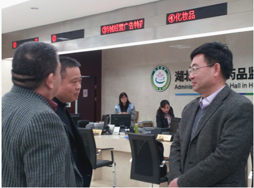 严振一行在湖北省局政务服务大厅、安徽省政务中心食品药品监管综合服务大厅实地考察了办理环境和流程,并与兄弟省局有关负责同志和处室进行了深入交流和探讨,认真了解当地行政审批集中办理和内设机构优化的背景、思路和历程,及具体工作举措和取得的成效。