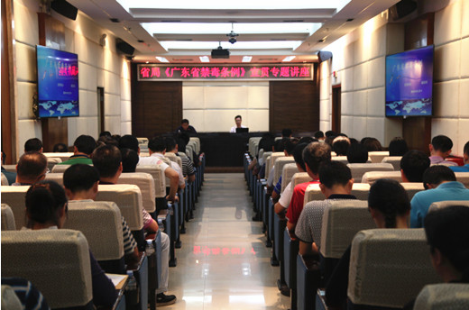 广东省禁毒委对省局举办条例宣贯非常重视,禁毒办主要负责同志亲自到会作专题报告:一是介绍了条例的起草背景—我省禁毒工作形势;二是介绍了条例制定的过程;三是对条例的重点条款进行了解读。
