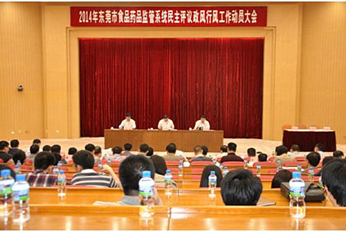 4月11日下午,东莞市食品药品监督管理局组织召开全市食品药品监管系统民主评议政风行风工作动员会,对该市系统民主评议政风行风工作进行部署。省局党组成员、省纪委派驻省局纪检组组长陈鲁峰、东莞市政府副秘书长张春扬出席会议并作讲话,东莞市局主要负责同志主持会议并宣读了工作方案。市局机关和水乡分局全体工作人员,市食品药品检验所领导班子,各镇(街、园区)分局(监督站)负责人共约 200人参加了会议。